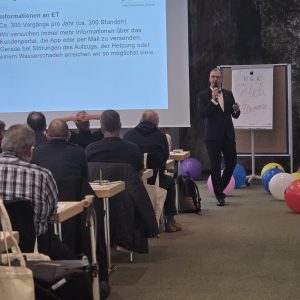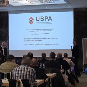 - Dipl.-Ing. Stefan Wetzel von der Firma UBPA GbR referierte zu Aufzügen, Aufzugssanierungen und zu den Aspekten der Cybersicherheit im Aufzugsbereich.