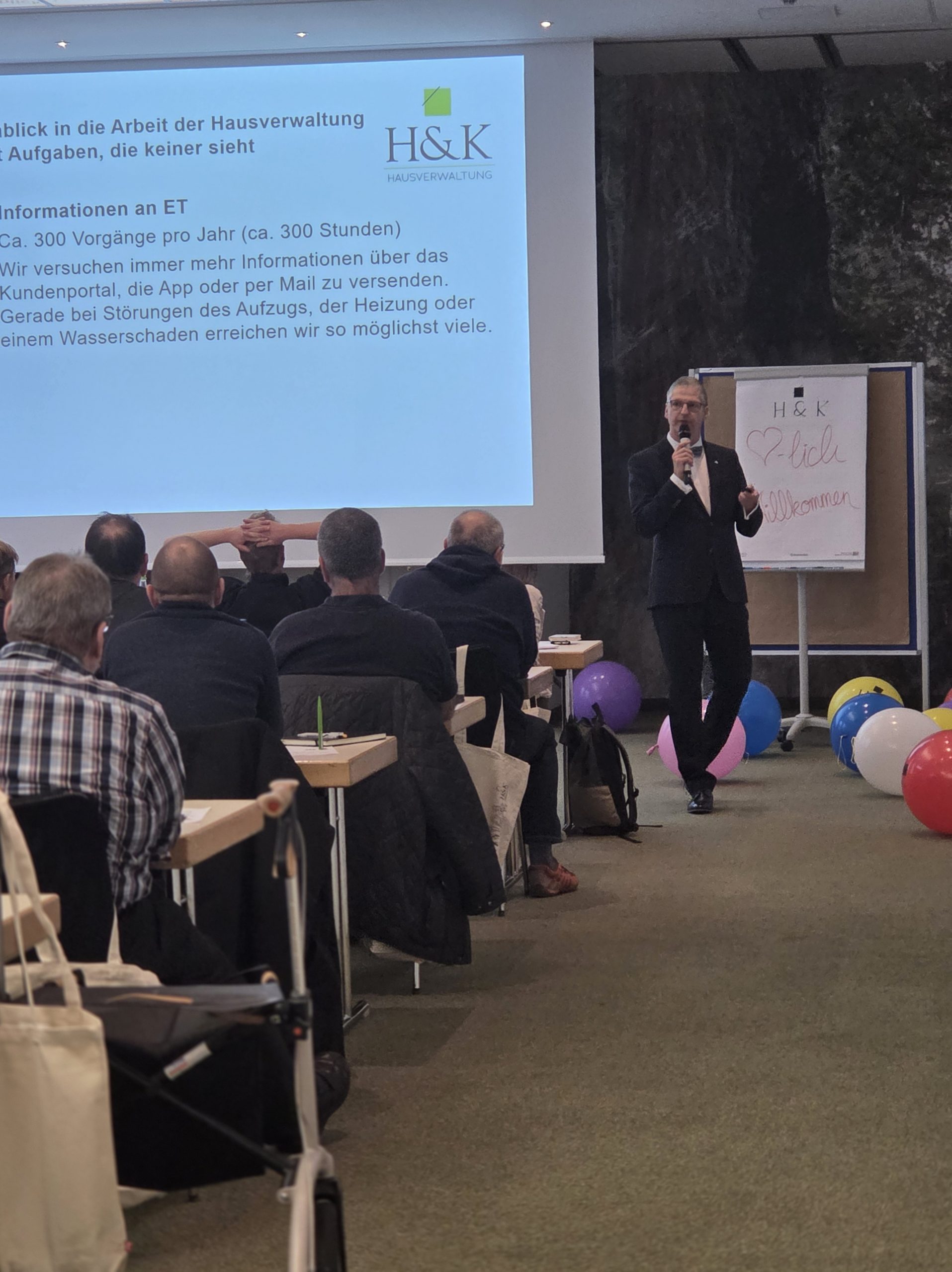 Nach einer herzlichen Begrüßung durch Herrn Hedrich, Geschäftsführer der H&K Hausverwaltung, sowie dem Team, erhielten die Gäste einen Überblick über aktuelle Änderungen in der Gemeinschaft der Wohnungseigentümer.